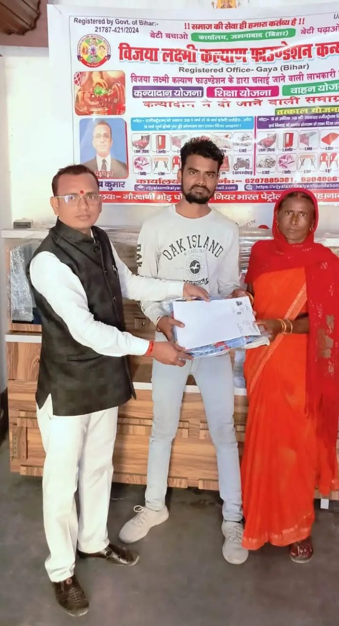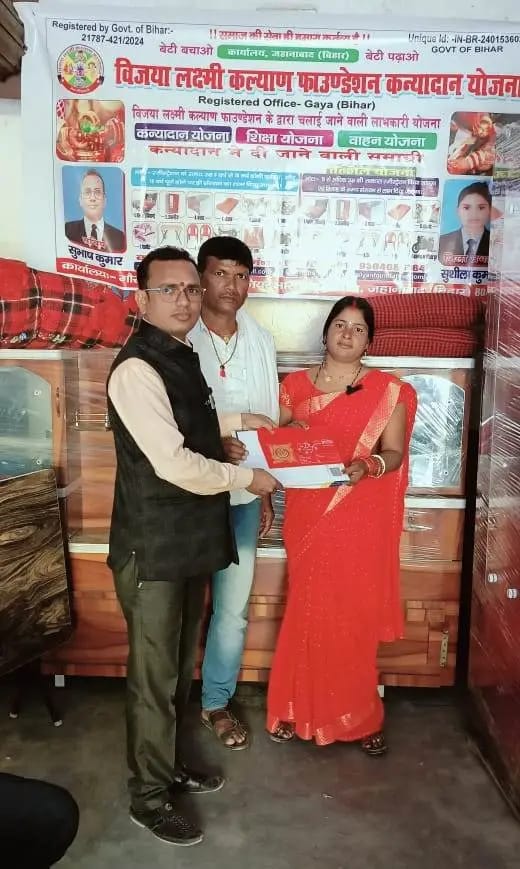 विजया लक्ष्मी कल्याण फाउंडेशन द्वारा संचालित कन्या विवाह सहायता योजना का मुख्य उद्देश्य समाज के आर्थिक रूप से कमजोर परिवारों को सहयोग प्रदान करना है। इस योजना के अंतर्गत संस्था उन परिवारों की मदद करती है, जिनकी बेटियाँ विवाह योग्य हैं लेकिन आर्थिक तंगी के कारण वे उनके विवाह की आवश्यक तैयारियाँ नहीं कर पाते। फाउंडेशन ऐसे परिवारों को विवाह सामग्री जैसे कपड़े, बर्तन, पलंग, बिस्तर, सजावटी वस्तुएँ, तथा अन्य आवश्यक सामान प्रदान करती है ताकि उनकी बेटियों का विवाह सम्मानपूर्वक सम्पन्न हो सके।
